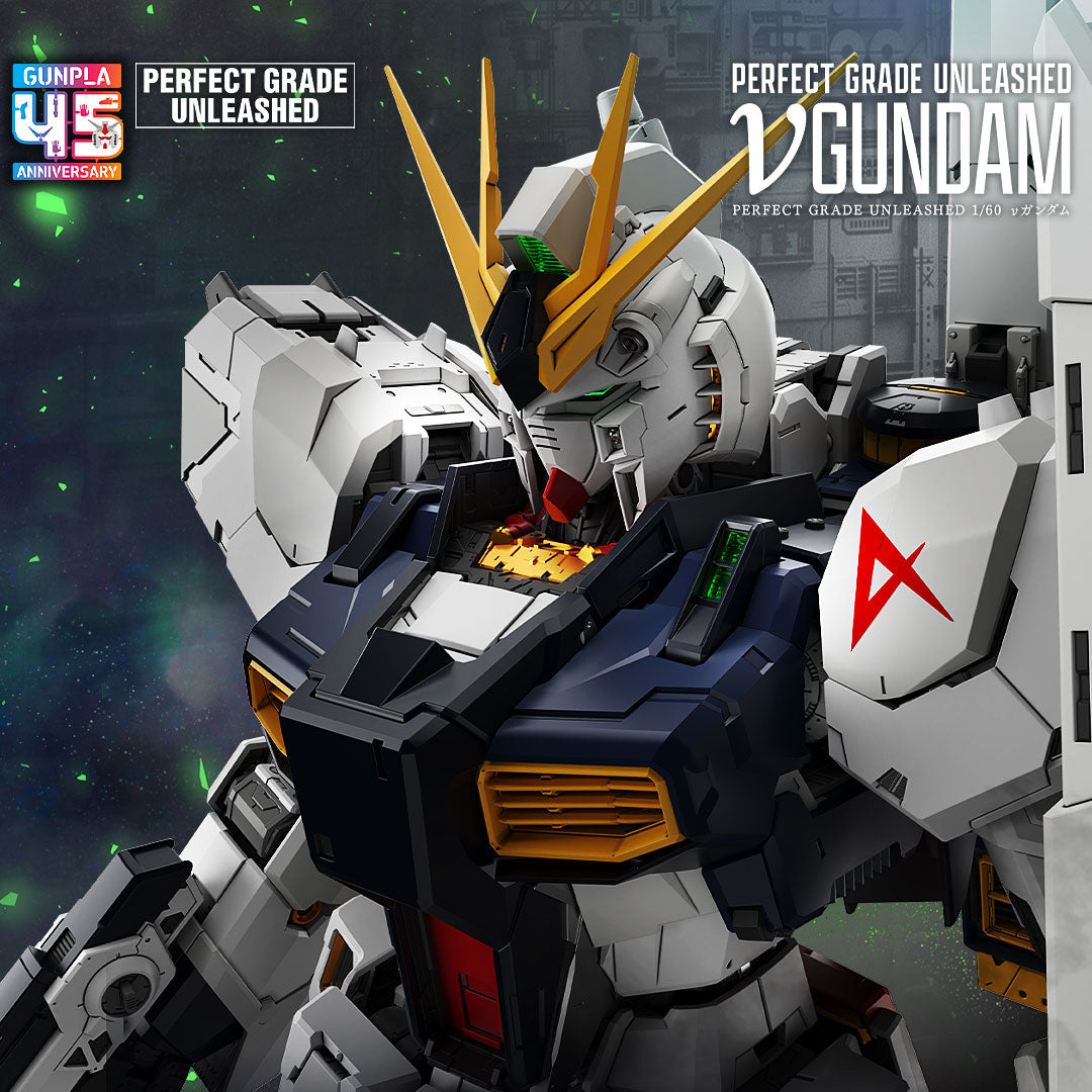 Celebrating the 45th Anniversary of Gunpla, the legendary Nu Gundam manifests through the cutting-edge technology of the latest "PERFECT GRADE UNLEASHED" model kit.