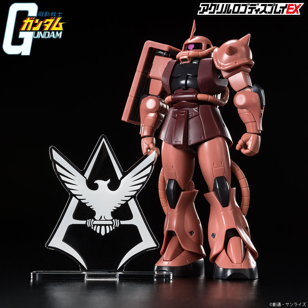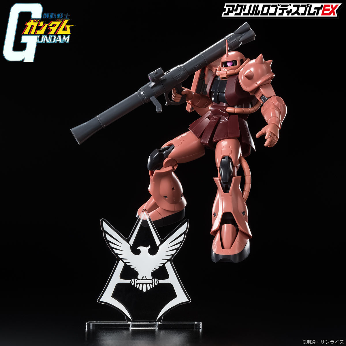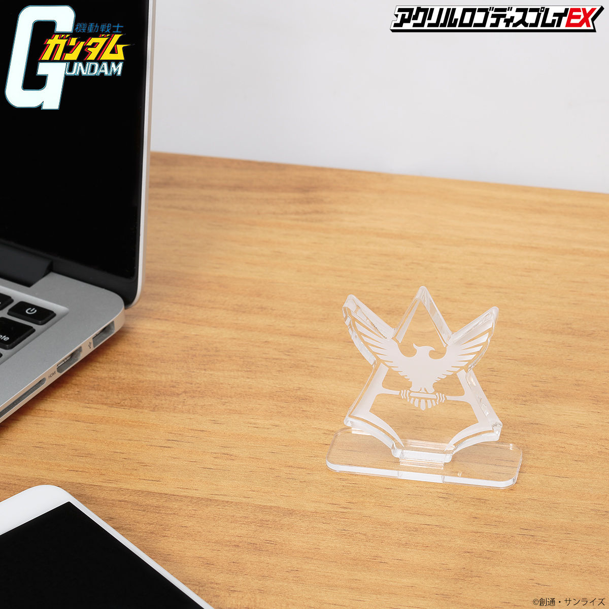 Display the logo. Display with the logo. A new style of display that highlights the iconic emblems representing the world of Mobile Suit Gundam. Unlike conventional acrylic stands, this logo display features approximately 10mm of thickness and refined surface finishing to deliver a strong presence and a premium feel.