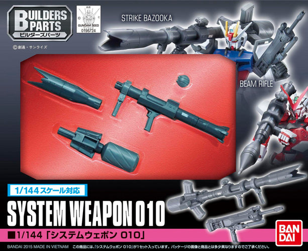 It's a weapon set for your Seed kits! This system weapon release features a Strike Bazooka and a Seed beam rifle that can be customized using the included parts! Weapon possession hands for Seed HGs are also included!