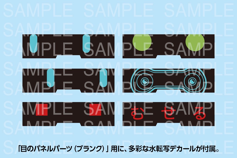 - The kit includes three additional blank eye panel parts which can be affixed with the included decals to create a variety of expressions.
