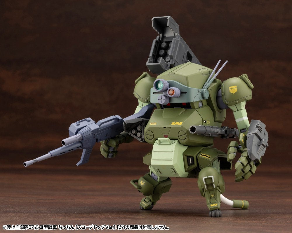 JGSDF Type 07-Ⅲ Tank Nacchin" is an original character created by the robot designer Moi, who is active on social media. JGSDF Type 07-Ⅲ Tank Nacchin [SCOPEDOG Ver.] is a collaboration between Nacchin and the much beloved classic, Armored Trooper VOTOMS.