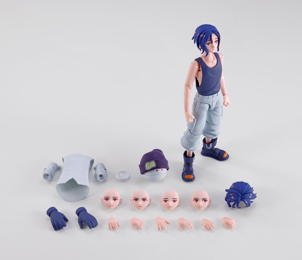[Set Contents] Main body, Interchangeable wrist parts (3 types each for left and right), 4 types of interchangeable facial parts, A set of interchangeable hairstyle parts, Replacement shirt parts set, Glove parts left and right, Joint parts, Haro (with hat), Haro stand