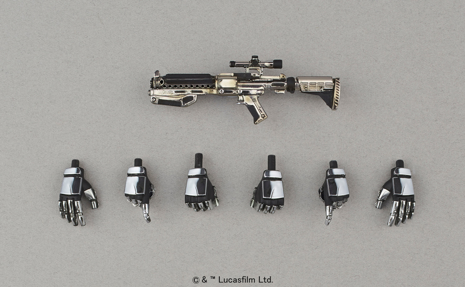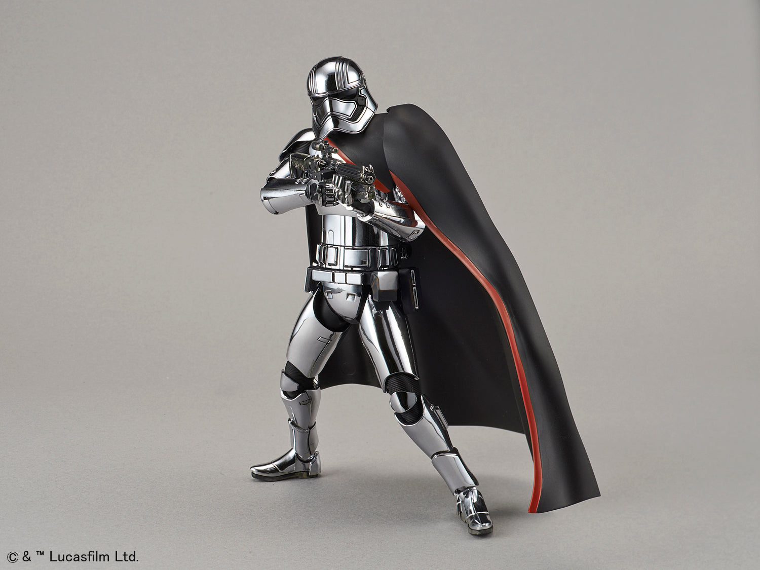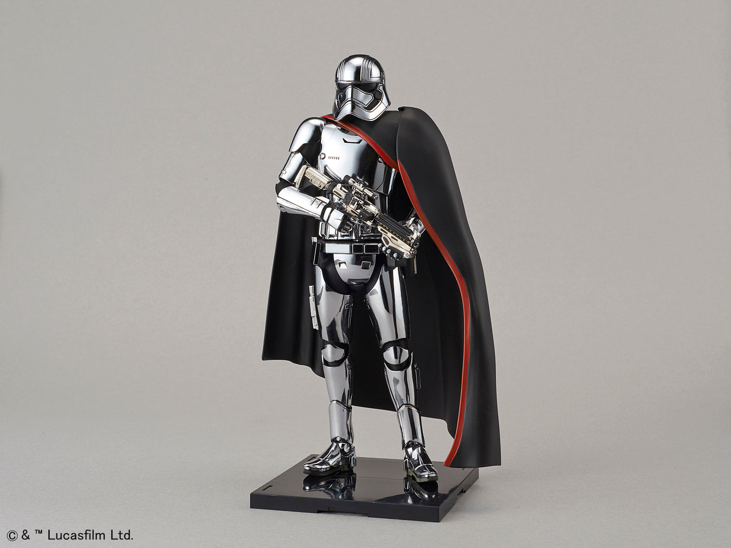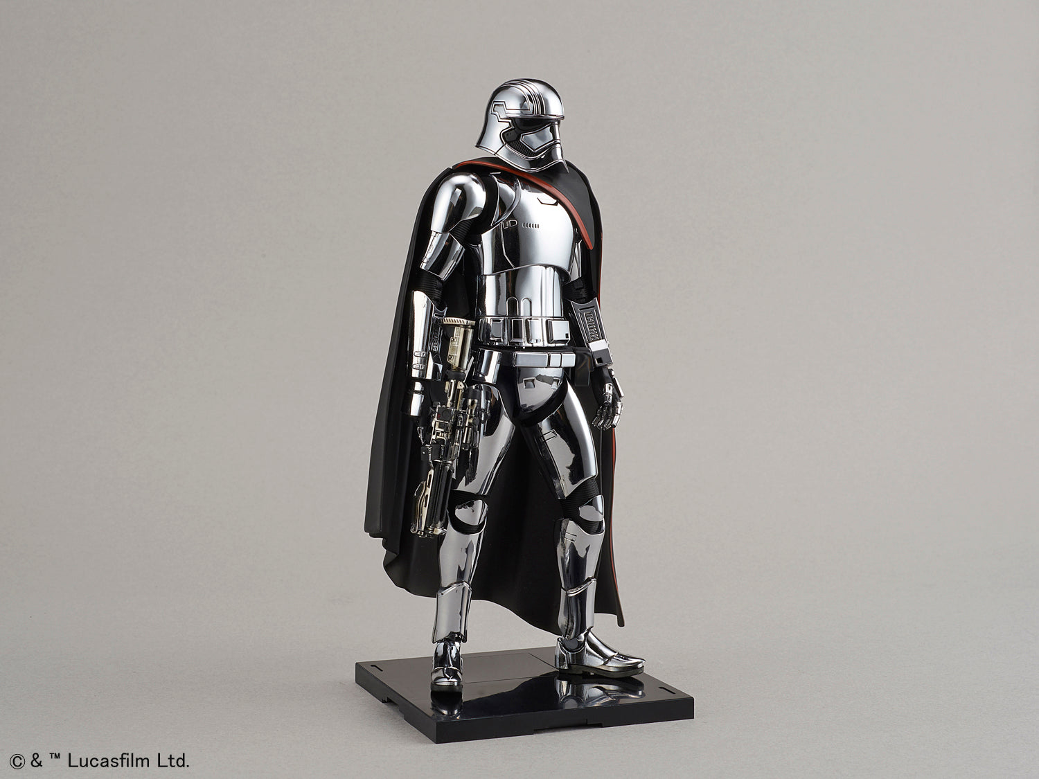 Captain Phasma: she may not have done very much in either of the movies she was in, but she definitely looked cool the whole time! This kit recreates her appearance from Episode VII: The Force Awakens, and includes her blaster rifle and a cloth cape. Interchangeable hands and a dedicated base are also included as well so you'll have plenty of posing options upon completion!