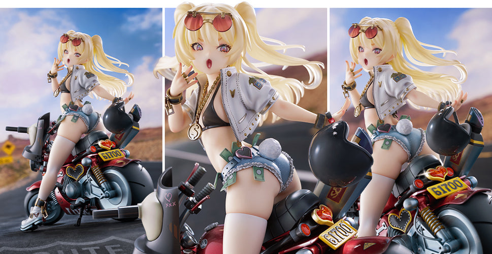 From the popular game Azur Lane comes a 1/7 scale figure of the Fletcher-class destroyer “Bache” in her “Gorgeous Speedstar” outfit! The figure captures Bache’s mischievous expression and charmingly cool pose alongside a bike full of presence and luxury. Every detail of her outfit has been carefully sculpted, and the bike has been faithfully reproduced to match the atmosphere of the original illustration. Be sure to add her to your collection and enjoy every detail up close!