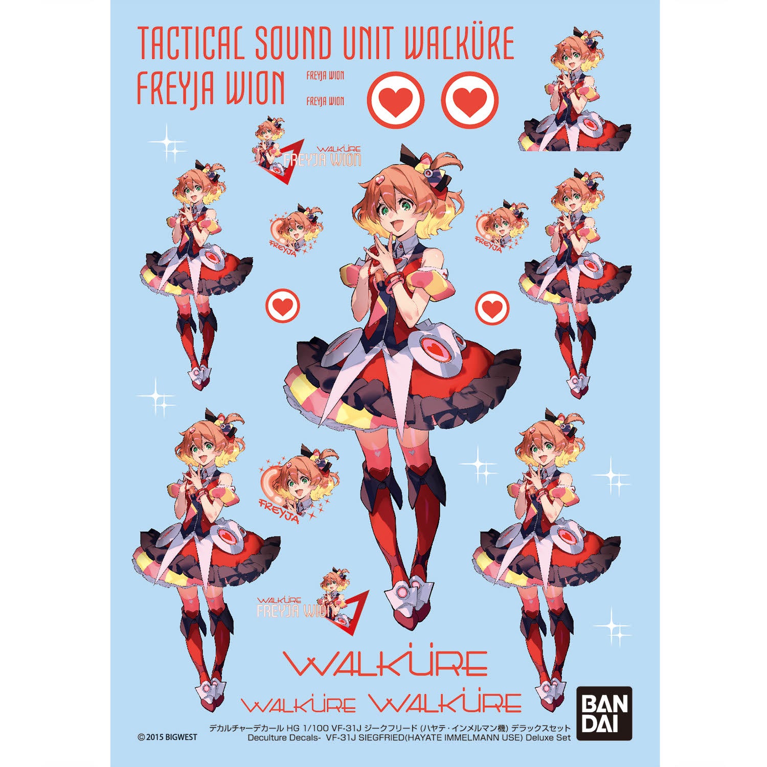 A deluxe version of the "HG 1/100 VF-31J Siegfried (Hayate Immelmann Unit)" is now available! This set includes the main kit, a special water-transfer decal sheet, and an acrylic stand of Freyja Wion featuring newly drawn artwork!