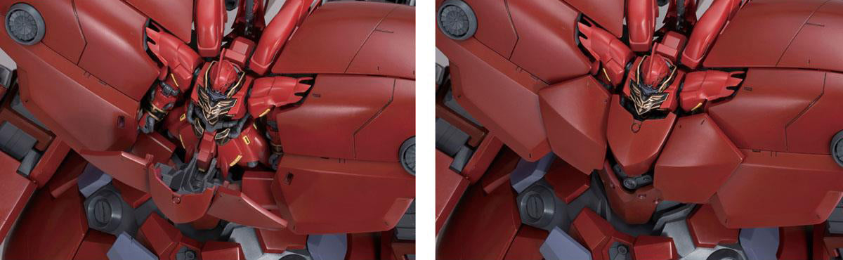 - The HGUC Sinanju is included in the set and can be placed in the cockpit without parts replacement.