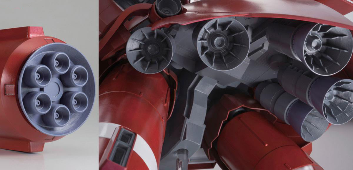 - Neo Zeong's 2 characteristic propellant tanks can be attached and separated just like in the show.