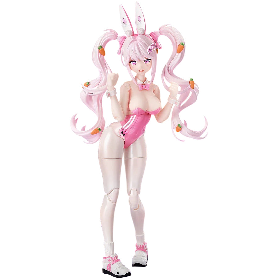 From the popular smartphone game "GODDESS OF VICTORY: NIKKE" comes a Hyper Body figure of Alice: Wonderland Bunny! She comes with four face plates including a standard face, a closed-eyes face, an angry face and a winking face. The set also includes optional parts like a submachine gun and a carrot hug pillow. Commander, be sure to add the adorable and energetic Alice to your collection!
