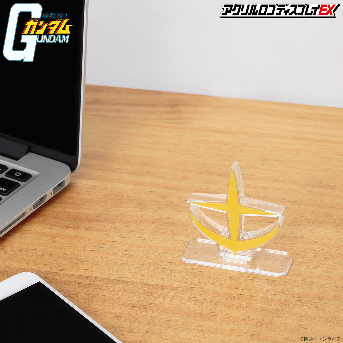Display the logo. Display with the logo. A new display concept that showcases iconic emblems representing the world of Mobile Suit Gundam. Instead of a conventional acrylic stand, this logo display features approximately 10mm of thickness and refined surface finishing, delivering a strong presence and a premium, high-end feel.