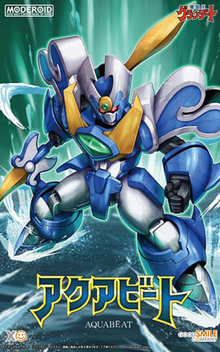 From the anime series "Mado King Granzort" comes a MODEROID plastic model of Aquabeat! The model is fully articulated and can be transformed from Face Mode to Battle Mode. A display stand is also included to display Aquabeat floating in the air while in Face Mode. Interchangeable hand parts are included.