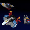 The mecha has been carefully recreated based on its appearance from the series. The model features several points of articulation and comes with parts to recreate the combination of of Pulser Burn, Baldi Prize and Cateranger into Baldios. Pulse Sabers, the Baldi Guard Shield and a Shoulder Cannon are all included.